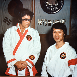 After the gas company, the building served as a church, during which time the red carpet and wood paneling—seen in many historic photos—were installed. Those features remained when the space was leased in 1970 to Grandmaster Kang Rhee, who operated his karate school here until 1974. During that time, Elvis Presley trained inside these walls, conducted belt tests, taught karate, and earned his 8th Degree Black Belt.